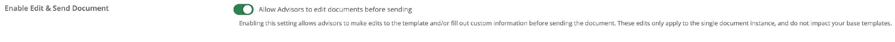 For this setting, if it is "off," it will not show Admin and Advisors the option to "Edit and Send" when sending out a document.