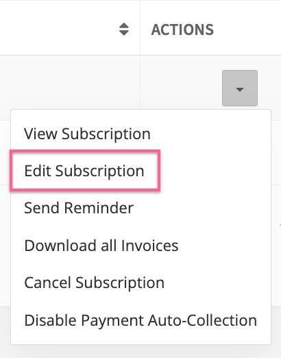 - To edit a Subscription that is scheduled for a future date, go to the invoice on the client's profile page under their Subscriptions tab, or in the left side bar under Transactions, Subscriptions then on the Subscription, click Edit Subscription.